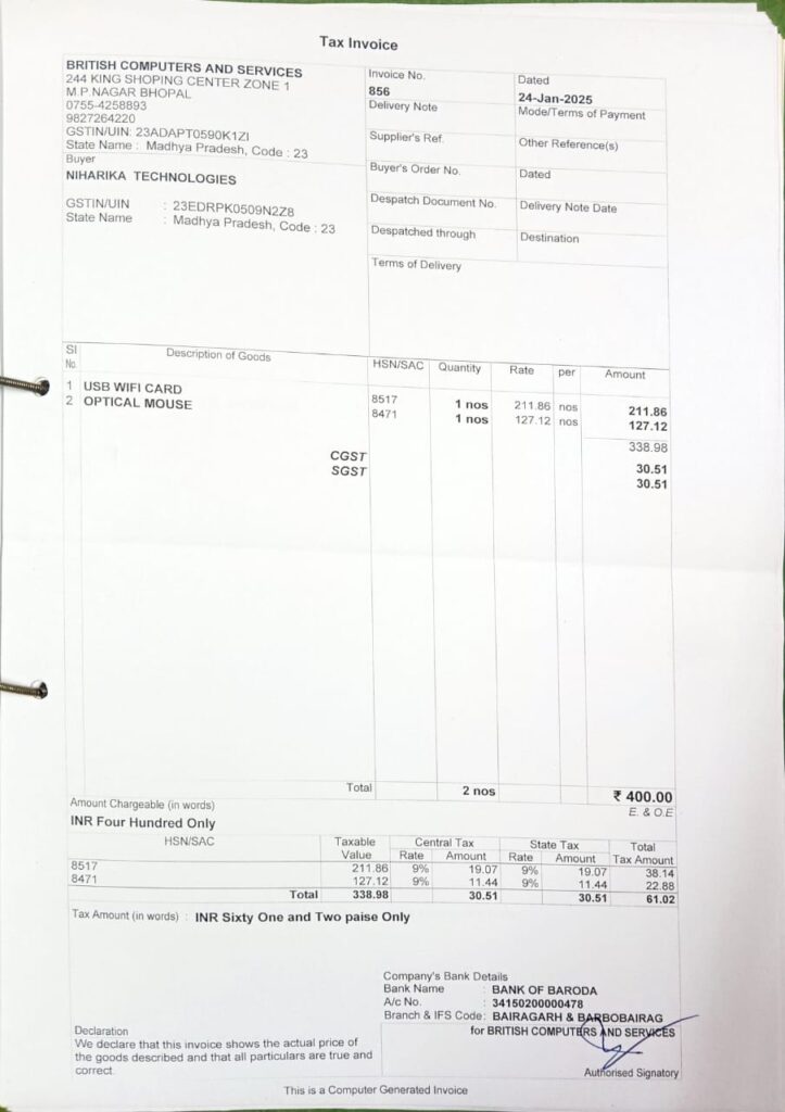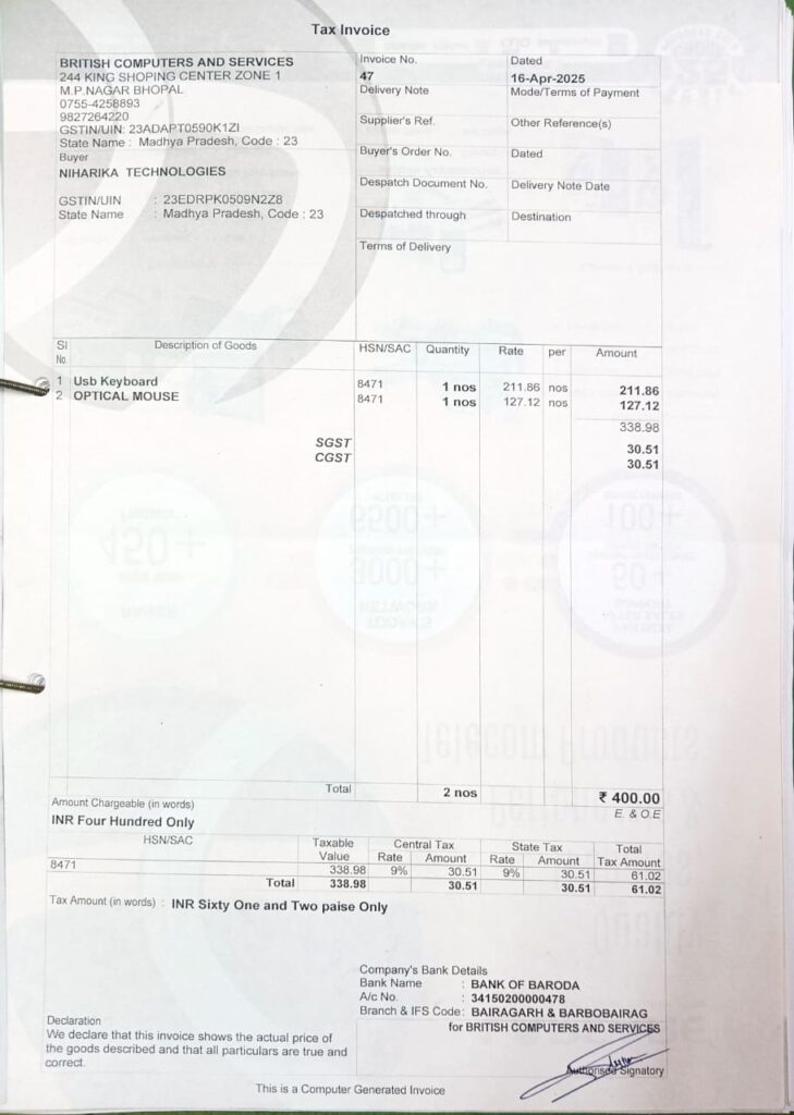 12. Assignment -Record Purchase Invoices Post published:November 6, 2025 Post category:Tally Prime Online Classes Basic to Advance Below are the invoices to practice record in tally prime 2 3 4 5 6 7 8 9 Invoice_SINDTA2317Download BACKNEXT Please Share This Share this content Opens in a new window Opens in a new window Opens in a new window Opens in a new window Opens in a new window Opens in a new window Opens in a new window Opens in a new window Opens in a new window Opens in a new window Opens in a new window You Might Also Like 9. Create Simple “Purchase Invoice” in Tally June 18, 2022 6. Create Important Master Ledger For Company Setup in Tally May 30, 2022 Tally Prime Classes (Introduction) May 18, 2022